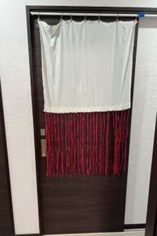 実際の取り組みでは、使う人の身長や動き方に合わせて、のれんの長さを調整することも重要です。顔あたりのまでの短さだと、急に顔に布があたってしまい不快になるでしょう。快適で、安全に使えるように、手で触る高さ(腰ぐらいまでの高さ)や、ひざ下まで届く長さなど、使いやすい長さを決めていきます。